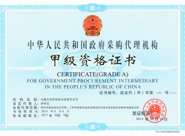 • 中華人民共和國政府采購代理機構(gòu)甲級資格證書