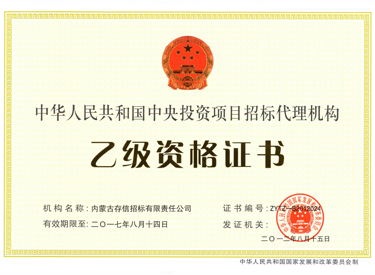• 中華人民共和國政府采購代理機構(gòu)乙級資格證書