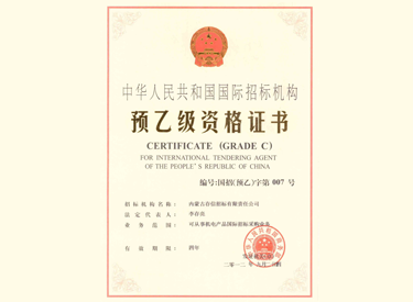 • 中華人民共和國國際招標機構(gòu)預(yù)乙級資格證書